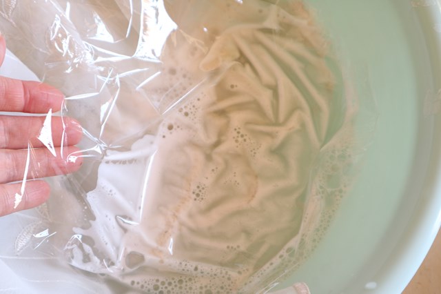 温度が下がらないように、ビニールなどをかぶせて「30分(〜1時間)」漬けおく。