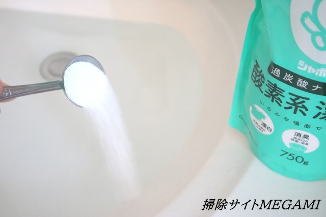酸素系漂白剤を半カップ〜1カップ弱入れる。