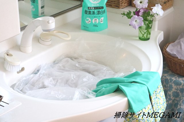 範囲が広いので、大きな桶や洗面ボウル、洗濯槽、浴槽などで漬けおきします。