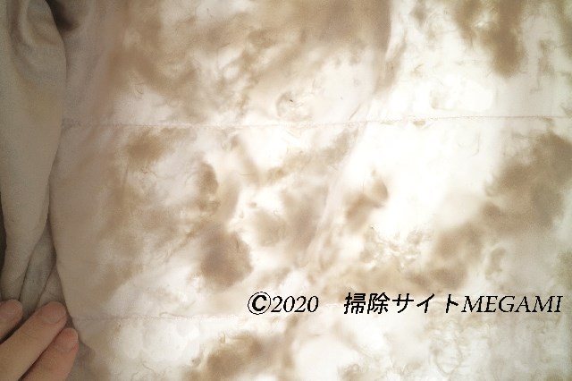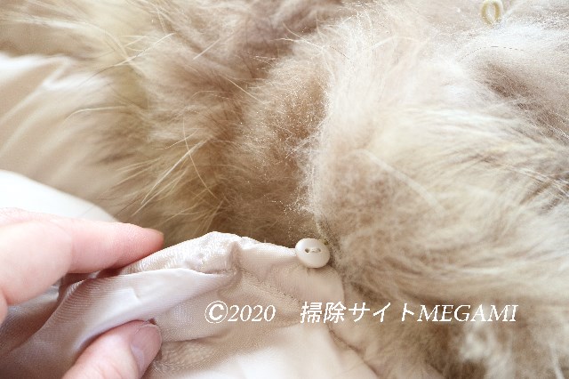 ある程度乾いたら、両手で挟みながらたたき、中の羽毛をほぐします。