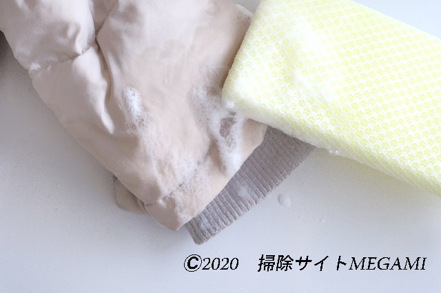 ダウンに原液を塗っただけでは、汚れは落ちず、そのままの仕上がりに。先に落としておくことが、綺麗に仕上げるコツです。
