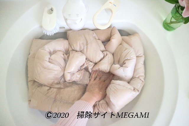 両手を使い、「浮いては底に沈める感じ」で、やさしく押し洗いします。