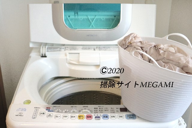 アクロンなど中性洗剤を入れ、「おしゃれ着用のコース(ソフト)」で洗います。