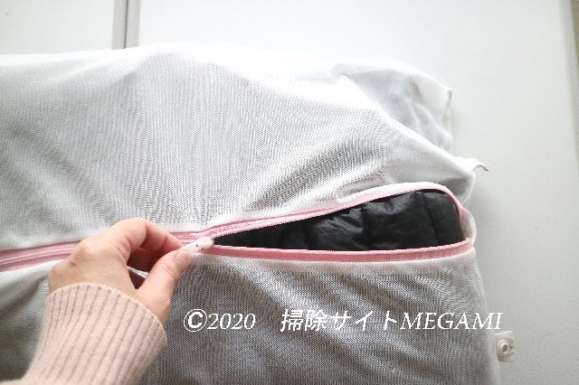 ファスナーをしめ、着脱式のフードは外して洗います。