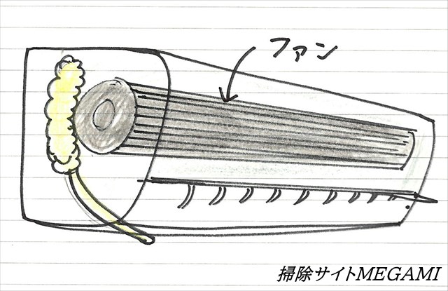 というのも、色んな方のネット動画などを見て「送風口の奥の方、ファンの裏側も拭ける」と、勝手に思いこんでいたのです。