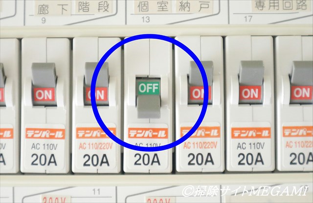 我が家の場合、コンセントが埋め込み式のため、エアコンのブレーカーをOFFに。