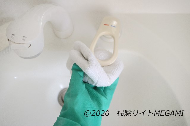 蛇口のレバーも、丁寧に除菌。