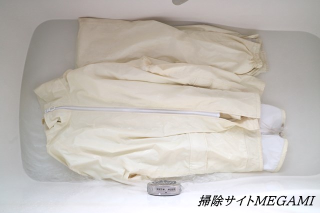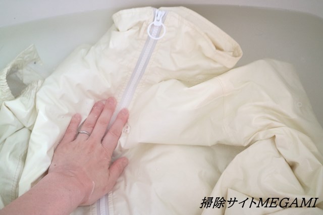 (洗剤がのこると、撥水効果が低下。綺麗に落とそう。)