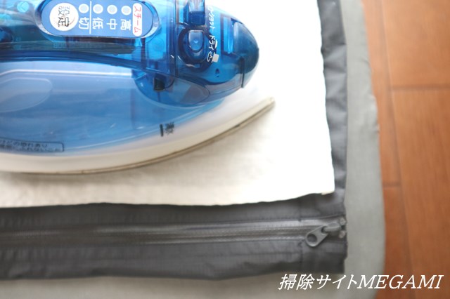 ※ロゴやファスナー部分には、アイロンをあてないように注意。