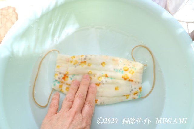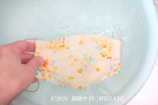 ※ウィルスが他のマスクにつかないよう、1枚ごとに洗剤水を変えるとよい。