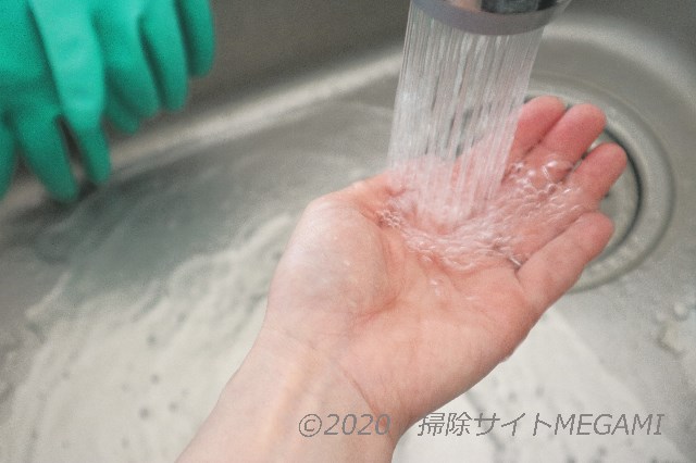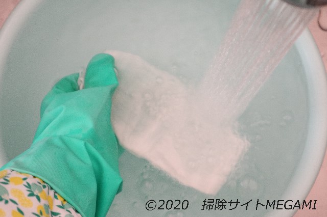 使用時には「炊事用のゴム手袋」をつけることが必須。小さなお子様がいる場合は「手に触れないよう」に漬け置く場所など配慮してください。