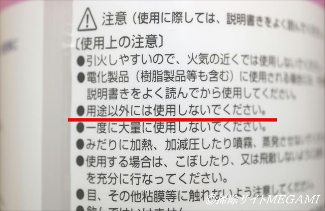 ところで、商品パッケージには、掃除に使えることが記載してあり、「用途以外には使用しないでください」との説明書きがあります。