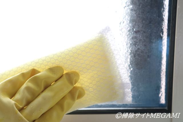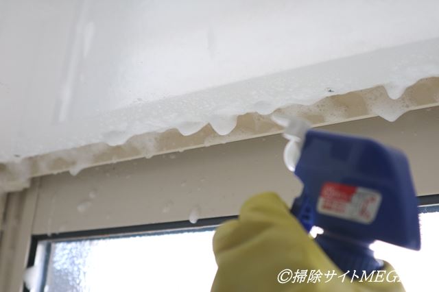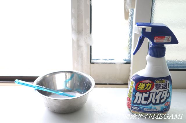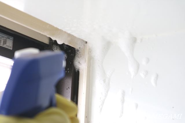 ※窓にカビ取り剤をぬり、水で流す方法です。