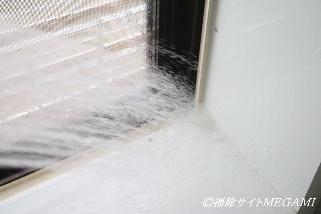 10分放置後、カビ取り剤を洗い流します。