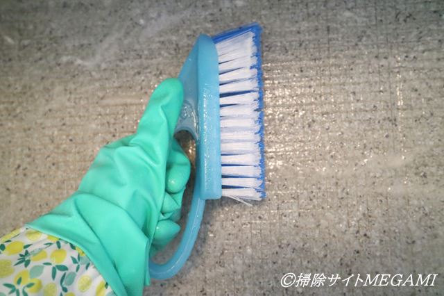 タイルなど溝汚れは、山切りカットのブラシが良い感じ。小さな力で「目地の汚れ」を綺麗に落とせるのでお勧めです。