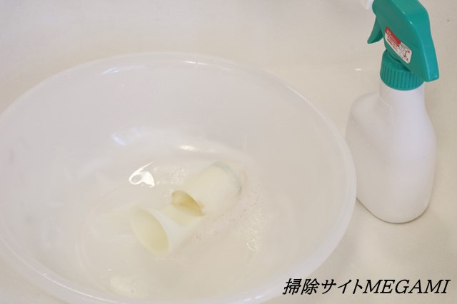 ごみ受けについた汚れは、泡のカビ取り剤で落とします。