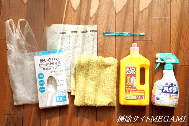 古歯ブラシや使い捨て手袋は、掃除後に処分できるので片付けが楽になります。