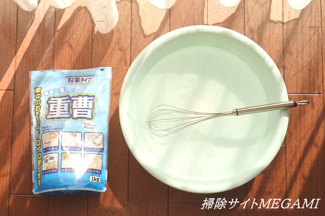 簡易掃除の場合は、少量のお湯で重曹を溶かして使います。