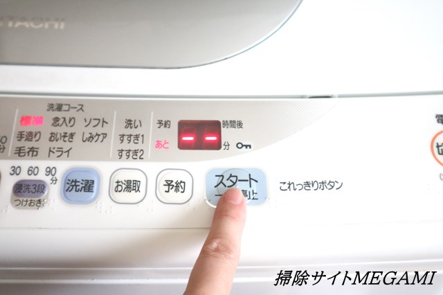 漬けおき後、排水せずに通常の洗濯コースを1サイクル。