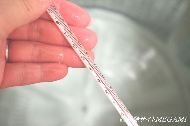 温度が低い場合は、沸かしたお湯を足し、40〜50度になるよう調整します。