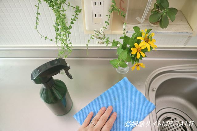酢で作ったお掃除スプレーは、キッチンで重宝します。
