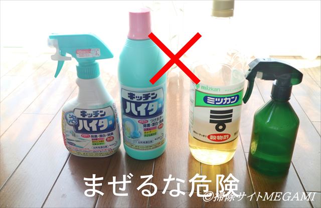 酢は酸性なので、塩素系の洗剤と混ぜないこと。
