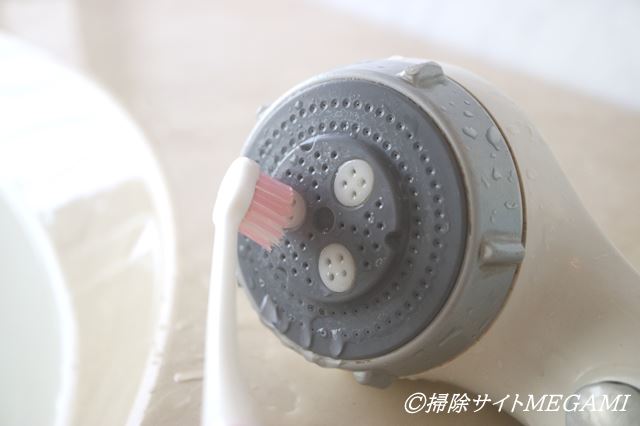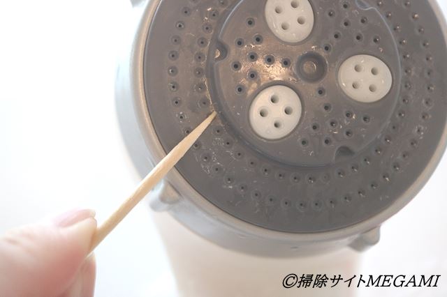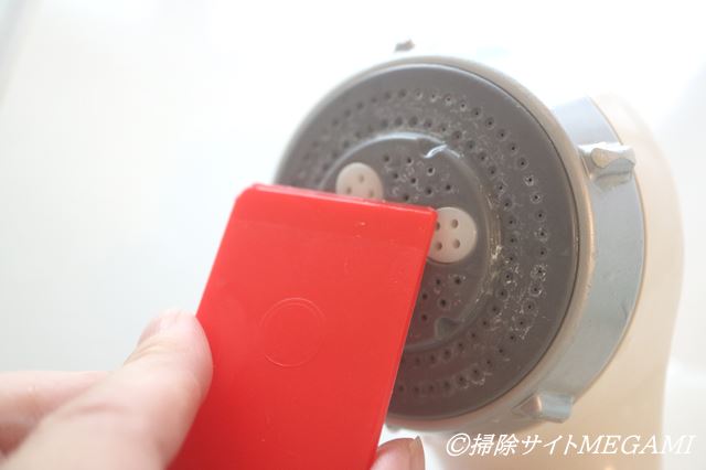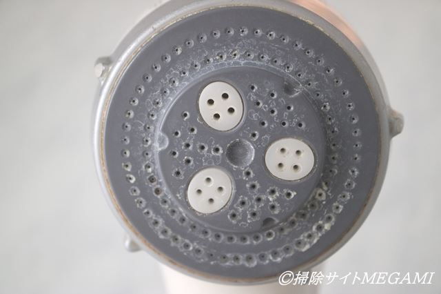 シャワーヘッドの穴周りって、白いカリカリした汚れがつきやすいですよね。