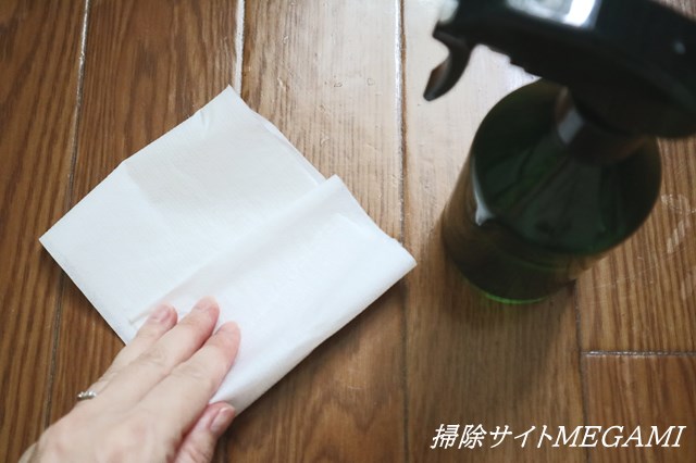 床にクエン酸水を床に拭きかけ、トイレットペーパーで拭き取ればOK。