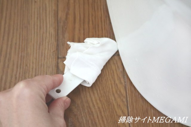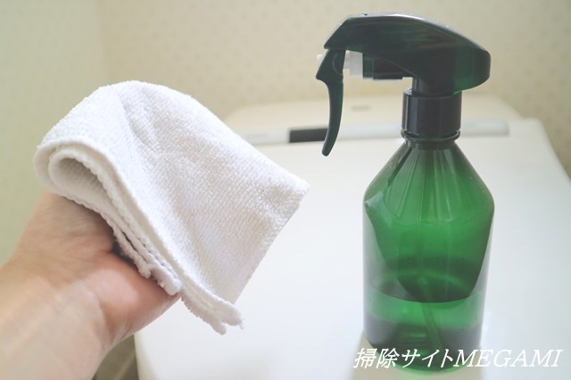 @横壁は、クエン酸水(酢水)を含ませたクロスで拭く。