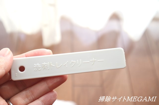 ちなみに今回は、洗濯機についていた「洗剤トレイ・クリーナー」を使用しました。