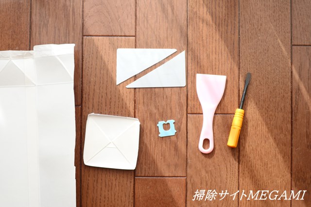 隙間掃除に使う道具は、粘土ベラや、キャッシュカード(鋭角にカット)が使いやすいです。
