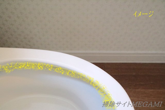 こびりつくとブラシでこすっても取れないが、サンポールを使うと、黄ばみが落ちやすくなる。