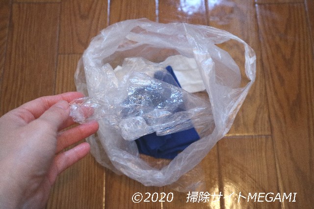 クロスや手袋は、予め用意していた「ゴミ袋」に入れて処分。