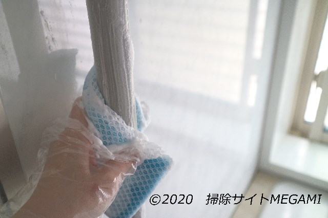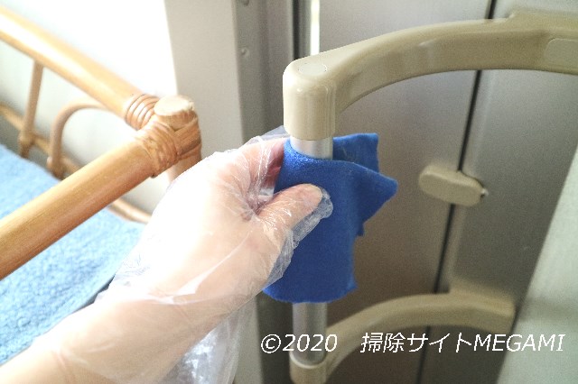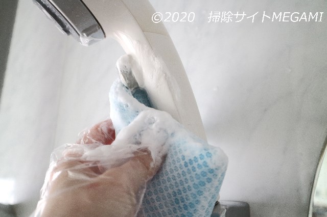 主に手が触れる箇所に、洗剤をつけて擦っていきます。