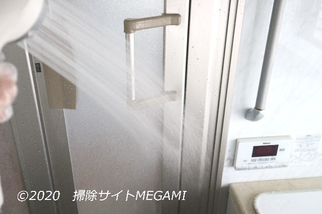 お風呂のドアノブなどは、液を布に含ませてぬりつけ、水拭きをすればOKです。
