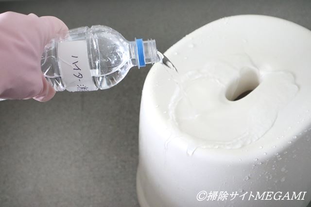 消毒液が飛び散らないよう、低い位置で静かに流してくださいね。