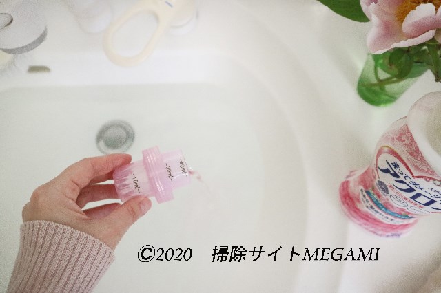30℃以下のぬるま湯か水に、洗剤を適量入れます。