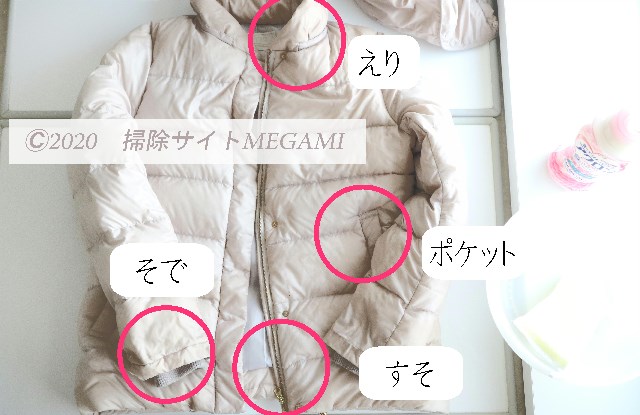 汚れている個所を事前にチェックして、「部分洗い」をしておきます。