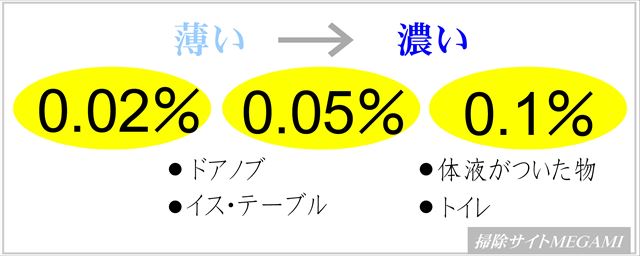 ※「新型コロナ対策」として厚生労働省は0.05%と0.1%を推奨しています。