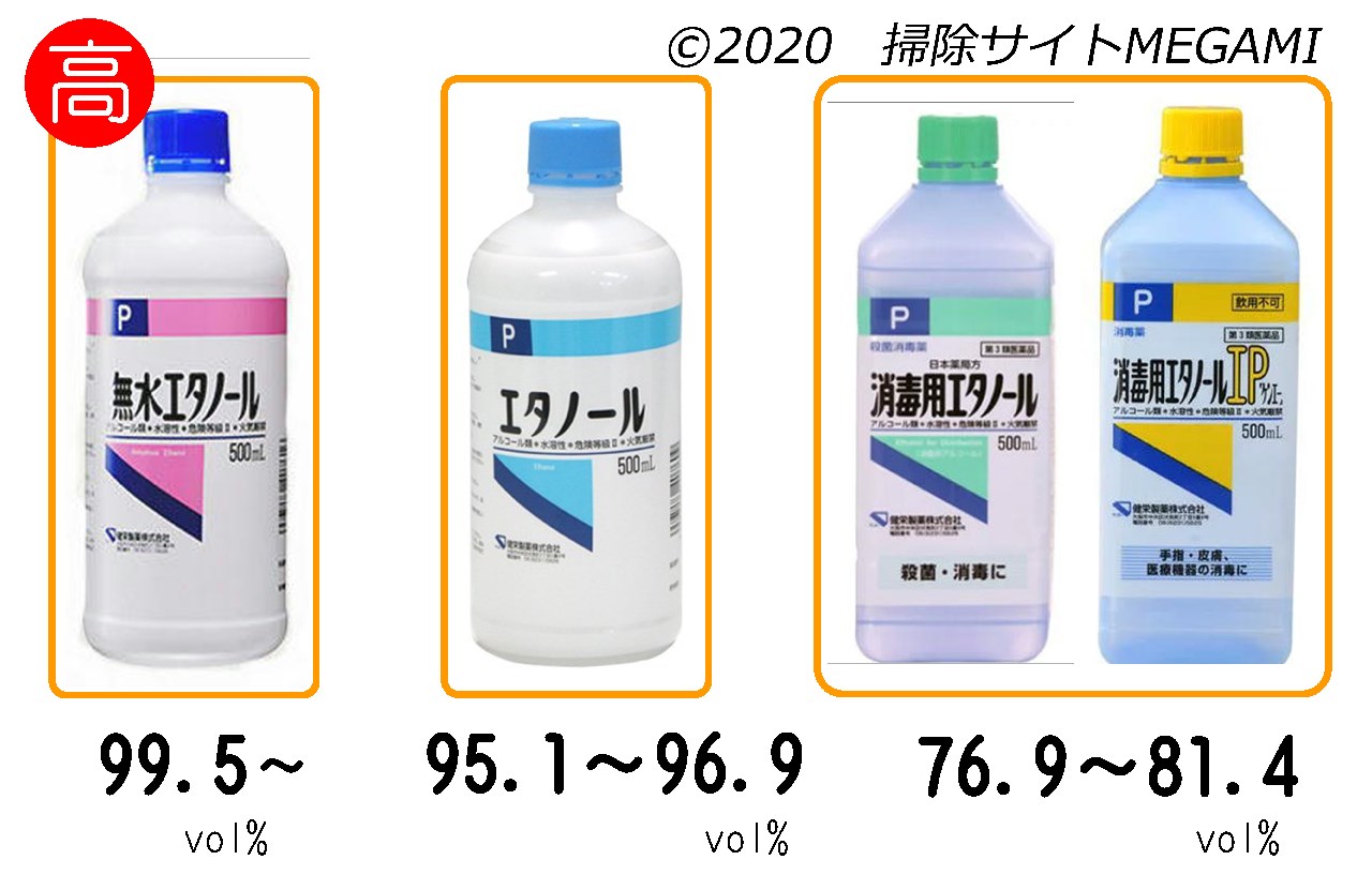 ちなみに、3種のエタノールの中で、安いのは「消毒用エタノールやIP」です。