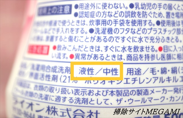 中性洗剤かどうかを確認したいときは、商品の液性のところを見ると分かります。