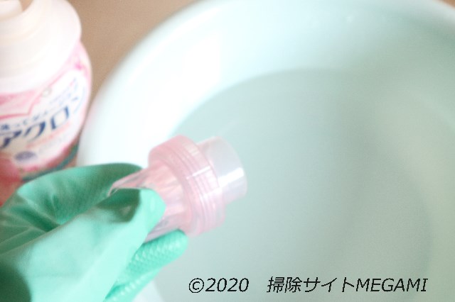 水に標準濃度の「衣料用・洗濯洗剤」を入れ、混ぜる。