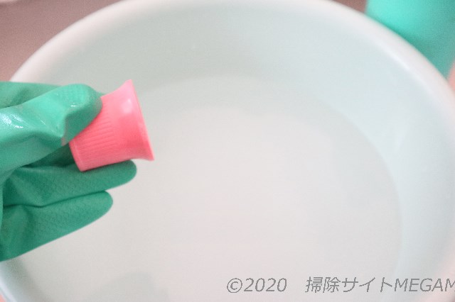 使用時には「炊事用のゴム手袋」をつけることが必須。小さなお子様がいる場合は「手に触れないよう」に漬け置く場所など配慮してください。