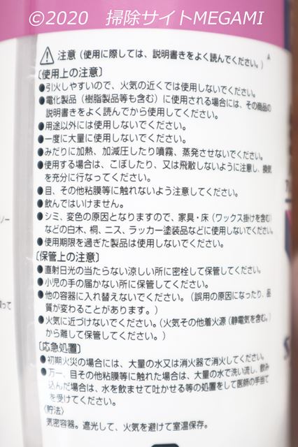 また、無水エタノールの容器には「消毒液」として使う場合の注意事項が書いてありません。