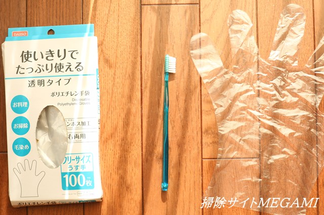 古歯ブラシや使い捨て手袋は、掃除後に処分できるので片付けが楽になります。
